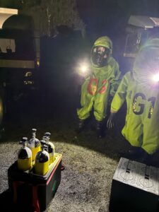 Ziel der Übung war es, die Zusammenarbeit zwischen den beteiligten Einheiten im Gefahrguteinsatz zu vertiefen, die Abläufe bei Menschenrettung, Erkundung und Gefahrstoffabwehr praxisnah zu trainieren sowie die Kommunikation zwischen den eingesetzten Trupps und der Einsatzleitung weiter zu festigen.