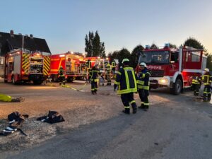 [15.09.2025] – Am Montag führte die Gefahrgutgruppe der Samtgemeinde gemeinsam mit dem Gefahrgutzug der Kreisfeuerwehr Verden sowie dem Tanklöschfahrzeug der Feuerwehr Thedinghausen eine umfangreiche Gefahrgutübung durch. Rund 30 Einsatzkräfte waren an der rund zweistündigen Übung beteiligt.