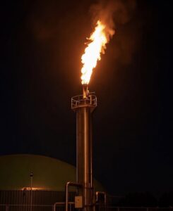 Ein vorbeifahrender Anrufer bemerkte einen Feuerschein an der Bremer Straße und wählte folgerichtig den Notruf. Vor Ort stellte sich die Situation jedoch anders dar. Der vermeintliche Brand war die Gasfackel einer Biogasanlage. Überschüssiges oder nicht direkt nutzbares Biogas wird dort kontrolliert verbrannt, um einen sicheren Betrieb der Anlage zu gewährleisten. So wird verhindert, dass unverbranntes Methan entweicht, das deutlich klimaschädlicher wäre, und zugleich werden mögliche Gefahren durch Gasansammlungen vermieden.